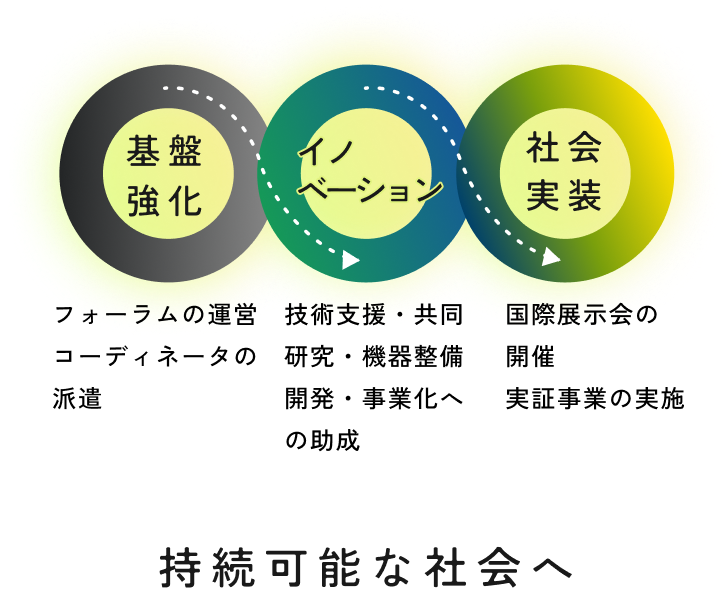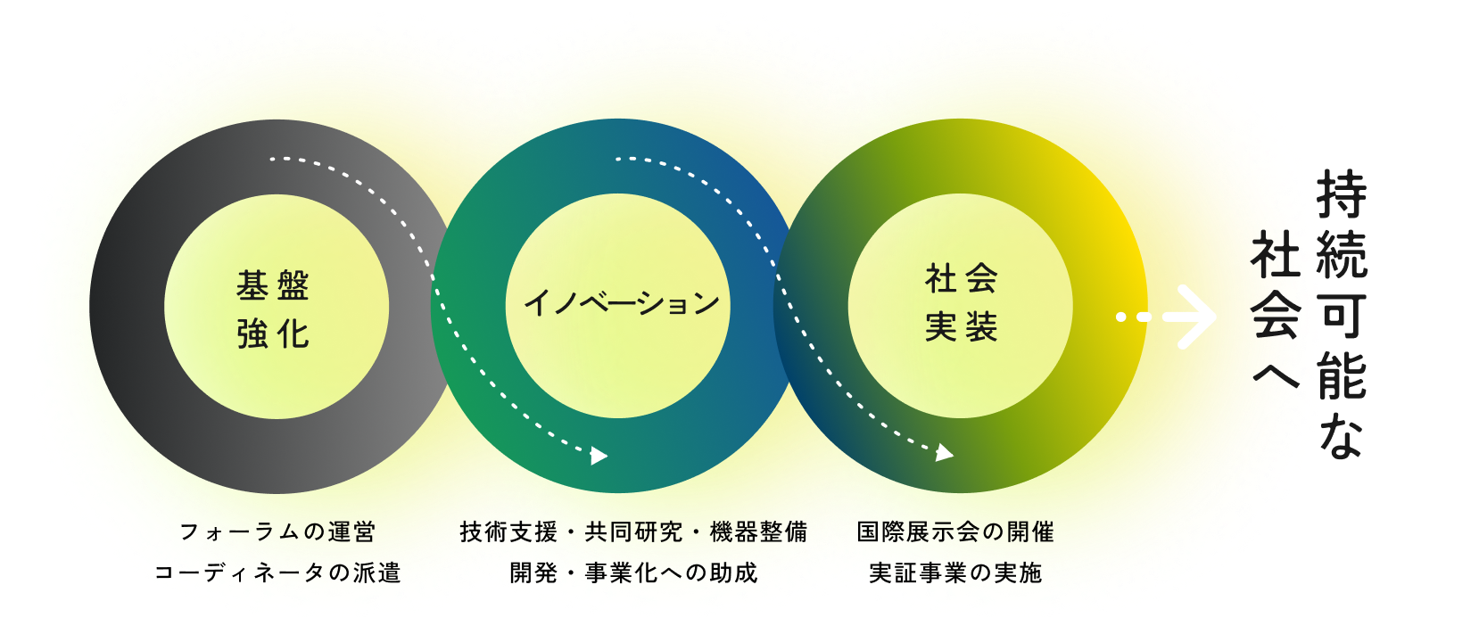 ふじのくにCNFプロジェクトは、自然素材「セルロースナノファイバー(CNF)」を軸に、持続可能な社会づくりを進める静岡県の取り組みです。産学官の連携を通じて、「基盤強化」「イノベーション」「社会実装」の3本の柱を中心に地域発の循環経済モデルの実現を目指しています。