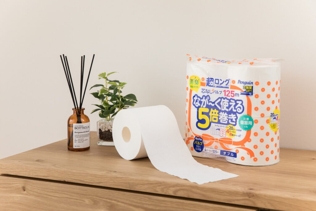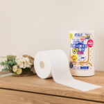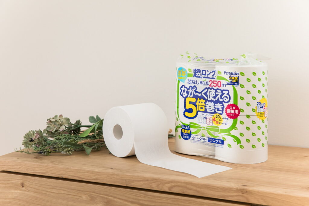 当社は創業当初から、芯なしトイレットペーパーへの製造・販売に注力しており、2015年には超長尺トイレットペーパーの販売を開始しました。しかし、長く巻いた分ロールが硬くなるため、製造や輸送の過程で力が加わりつぶれると、芯なしでは形を復元するのが難しく、ホルダーに入りづらくなる欠点がありました。そこで、植物由来の新素材「CNF」に着目し、芯孔強度の向上に成功。この環境にも優しい製品が、皆さんの生活をほんの少しでも楽にするお手伝いができることを願っています。 |